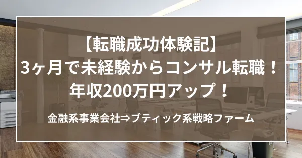 【体験記】3ヶ月で未経験からコンサル転職!年収200万円アップ&手厚い内定後サポートで入社後の不安を解消!